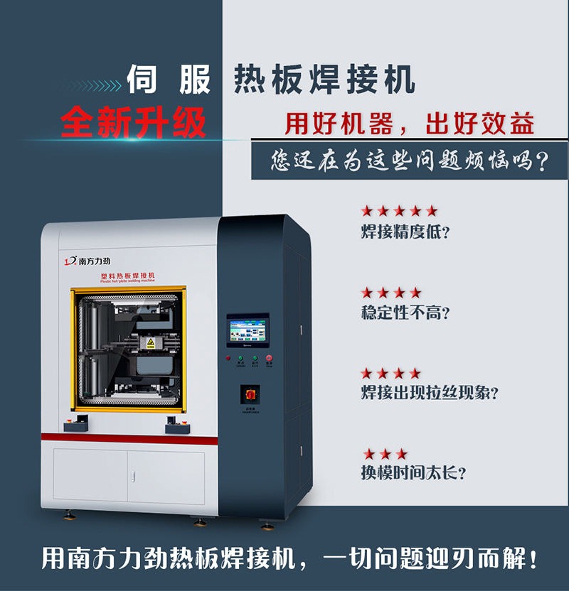 南方力勁機械有限公司是一家擁有20多年行業經驗的塑料熱板焊接機、超聲波塑料焊接設備、振動摩擦機等自動化塑料焊接設備的制造企業,近期,開發了新款的塑料熱板焊接機,具有傳統塑料熱板焊接機不具有的優勢,可用于家用電器、玩具、電子等多個行業。這款設備焊接效率高,品質有保障,可有效降低企業的生產成本,提升經濟效益。