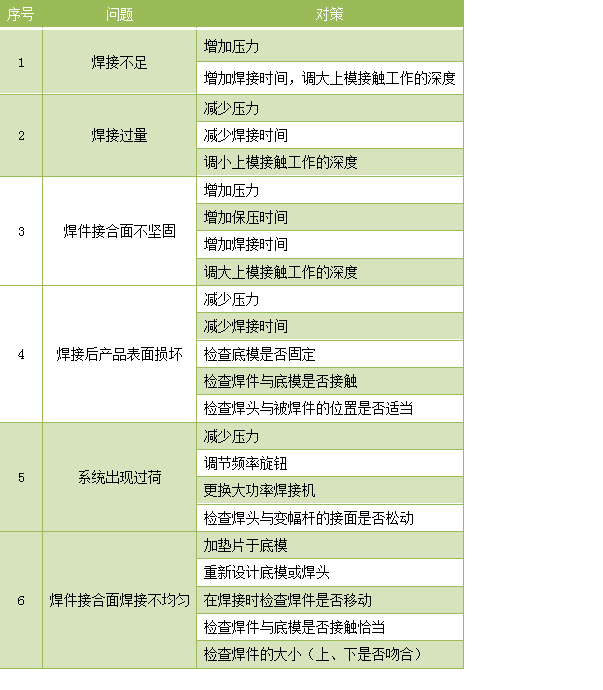 超聲波塑料焊接機(jī)常見焊接問題以及解決對(duì)策表