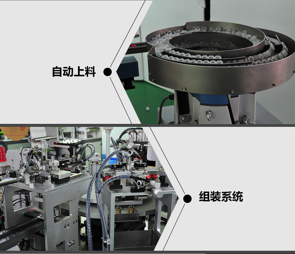 精密輸液器的滴頭過(guò)濾部分全自動(dòng)組裝,實(shí)現(xiàn)組裝產(chǎn)品的全自動(dòng)上料、組裝、粘合、檢測(cè)、下料、以免手工操作帶來(lái)的二次污染。采用各個(gè)模塊集成組裝,便于設(shè)備的拆分、維修以及機(jī)構(gòu)的單獨(dú)運(yùn)行,與前序機(jī)器實(shí)現(xiàn)聯(lián)機(jī)?