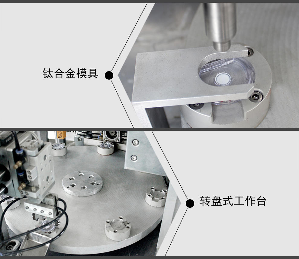 同時上下蓋自動上料,機械手取放,轉盤式超聲波自動焊接,自動出料,節省人工。