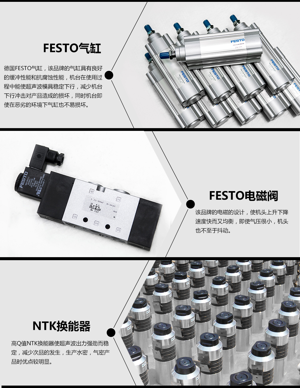 南方力勁機械有限公司是一家大型的超聲波設備研發(fā)、生產(chǎn)及銷售企業(yè),公司塑焊機事業(yè)部從事生產(chǎn)標準塑焊機,2600W-3200W塑焊機,4200W-5200W塑焊機等大功率焊接設備;15K、20K、28k、40K等精密型焊接設備,還有非標塑焊機設備,雙頭塑焊機、四頭塑焊機、六頭塑焊機、中空板膠框焊接機、護欄管焊接機、熱板機、旋轉(zhuǎn)式熔接機、汽車門板焊接機、汽車儀表盤焊接、汽車遮陽板焊接機、汽車燈焊接機、汽車保險杠焊接機等,同時為客戶設計非標自動化塑膠焊接設備。