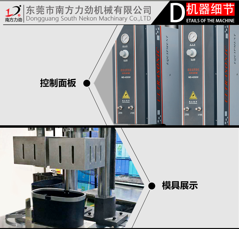 南方力勁機械有限公司是一家大型的超聲波設備研發(fā)、生產(chǎn)及銷售企業(yè),公司塑焊機事業(yè)部從事生產(chǎn)標準塑焊機,2600W-3200W塑焊機,4200W-5200W塑焊機等大功率焊接設備;15K、20K、28k、40K等精密型焊接設備,還有非標塑焊機設備雙頭塑焊機四頭塑焊機、六頭塑焊機中空板膠框焊接機護欄管焊接機熱板機旋轉(zhuǎn)式熔接機汽車門板焊接機汽車儀表盤焊接汽車遮陽板焊接機汽車燈焊接機汽車保險杠焊接機等,同時為客戶設計非標自動化塑膠焊接設備
